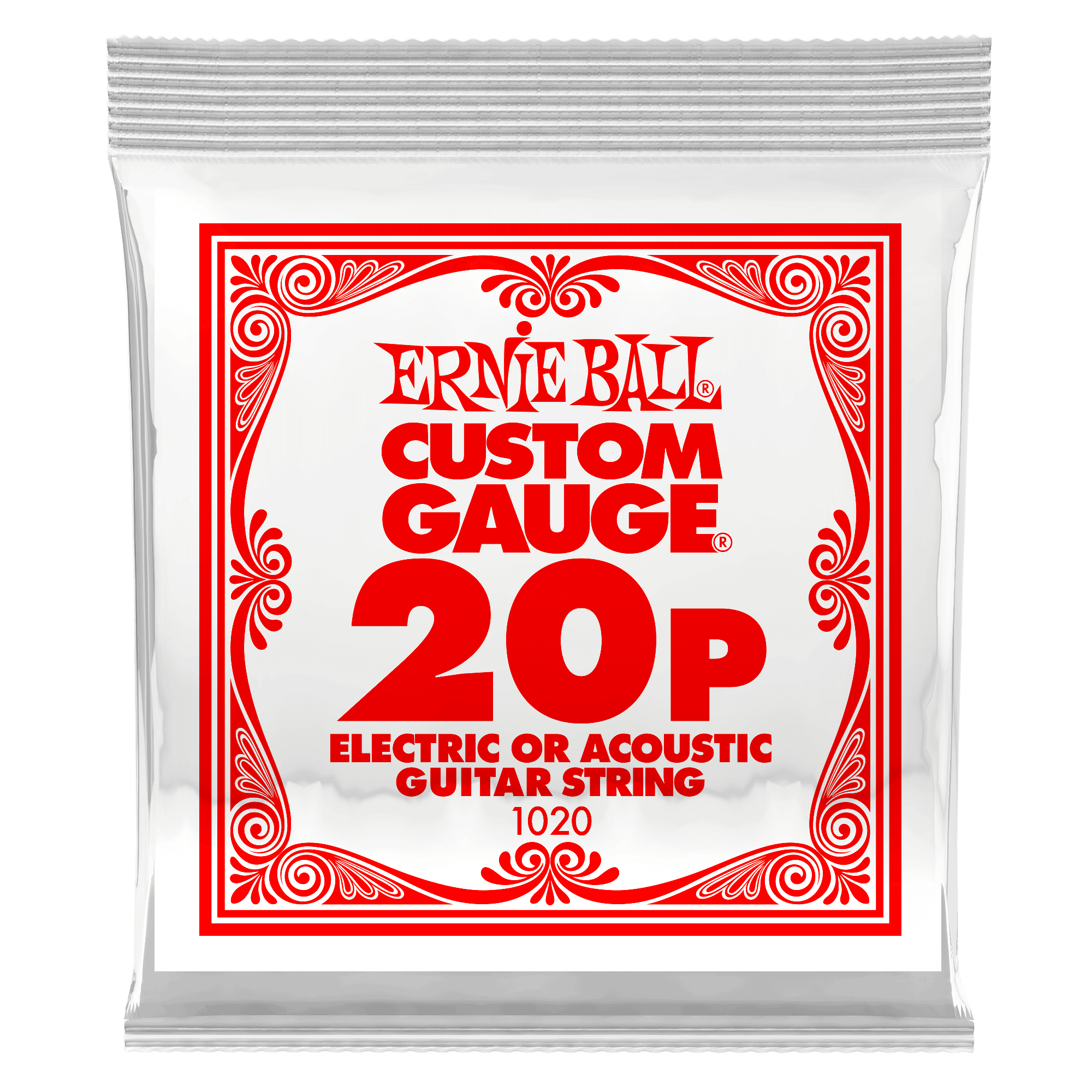 Ernie Ball Plain Steel Electric or Acoustic Guitar Strings are made of specially tempered tin plated high carbon steel used on electric and acoustic guitars. Ernie Ball revolutionized the market by offering Custom-Gauge single string options allowing guitarists to create personalized string sets. Length: 39.5