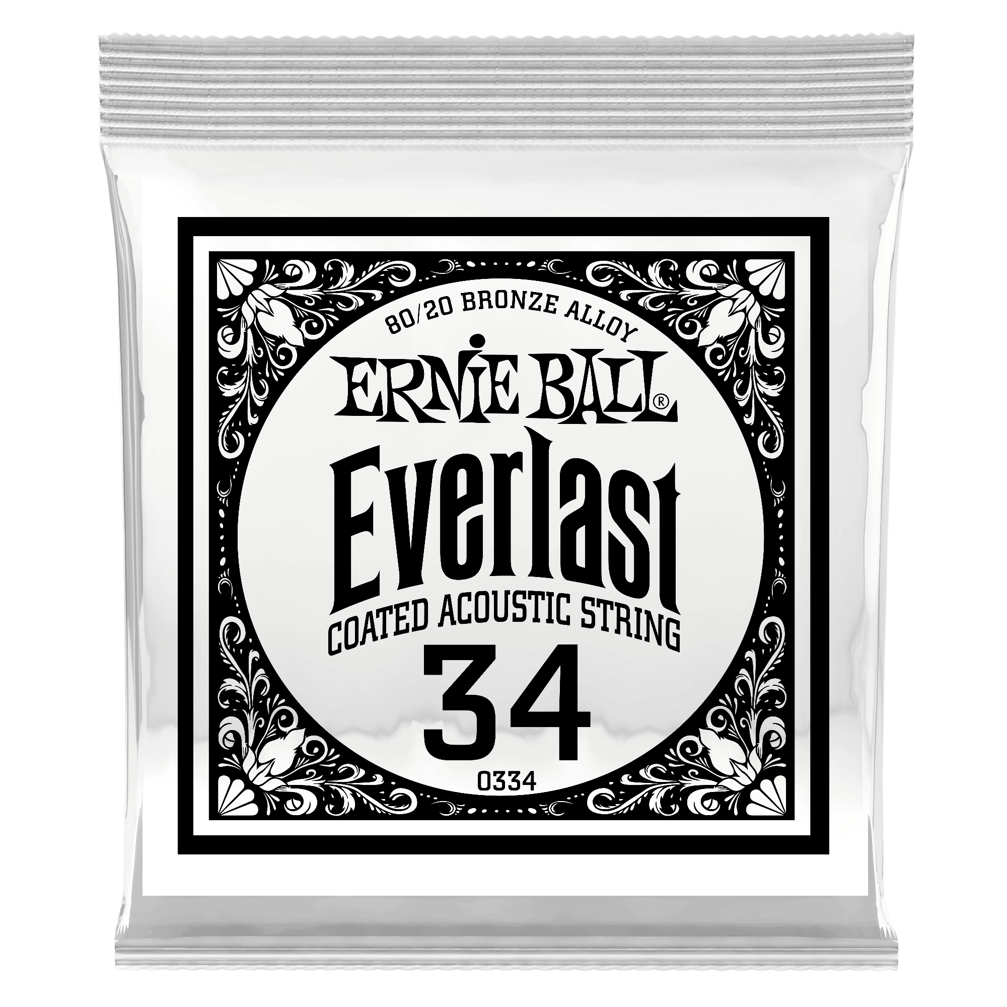.034 Everlast Coated 80/20 Bronze Acoustic Guitar Strings 6 Pack