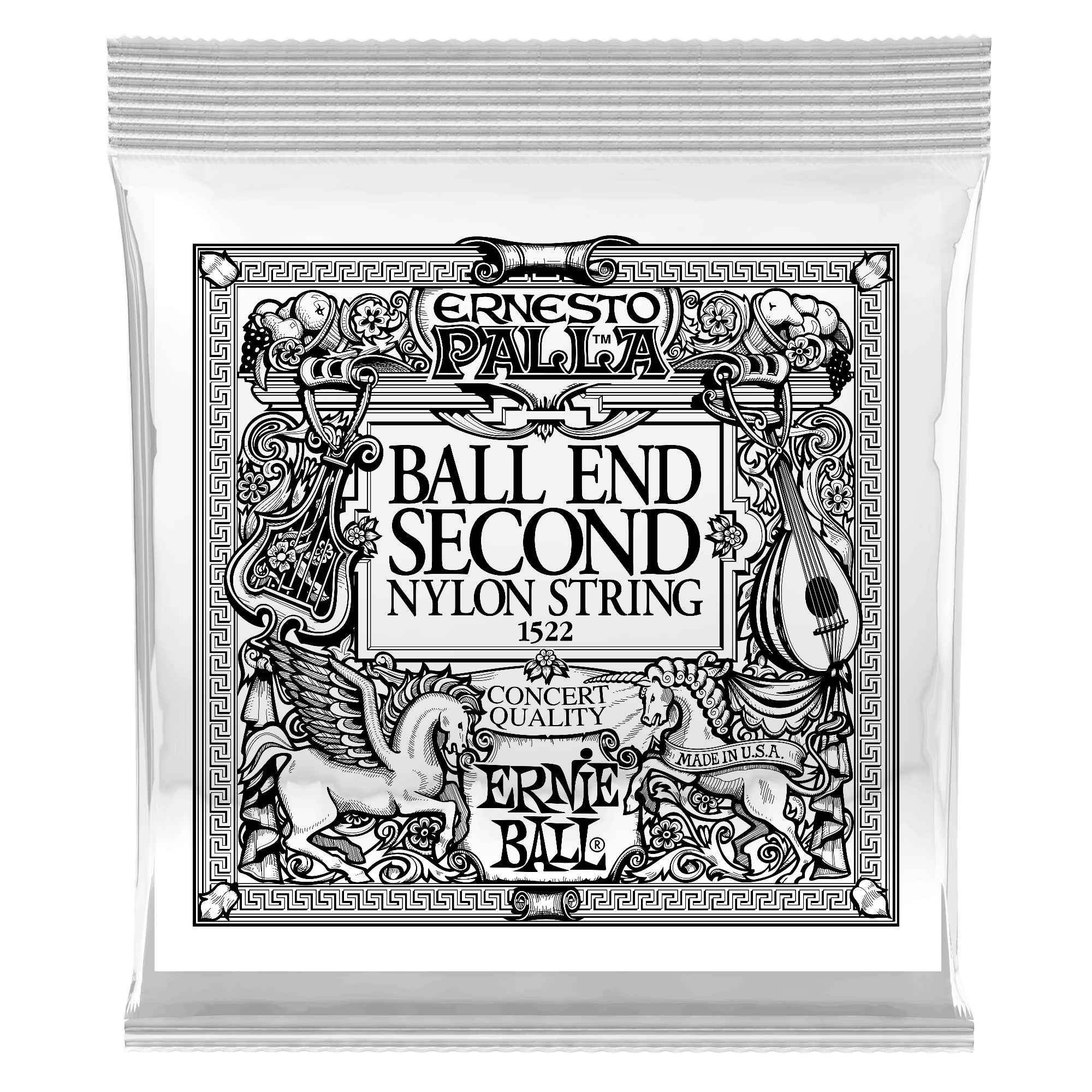 Ernie Ball Ernesto Palla Black Nylon Ball End Classical Guitar Strings are made of a solid black nylon monofilament providing rich pure treble tones with percussive attack. These strings feature a ball end contruction for faster installation and better tuning stability. .032 gauge