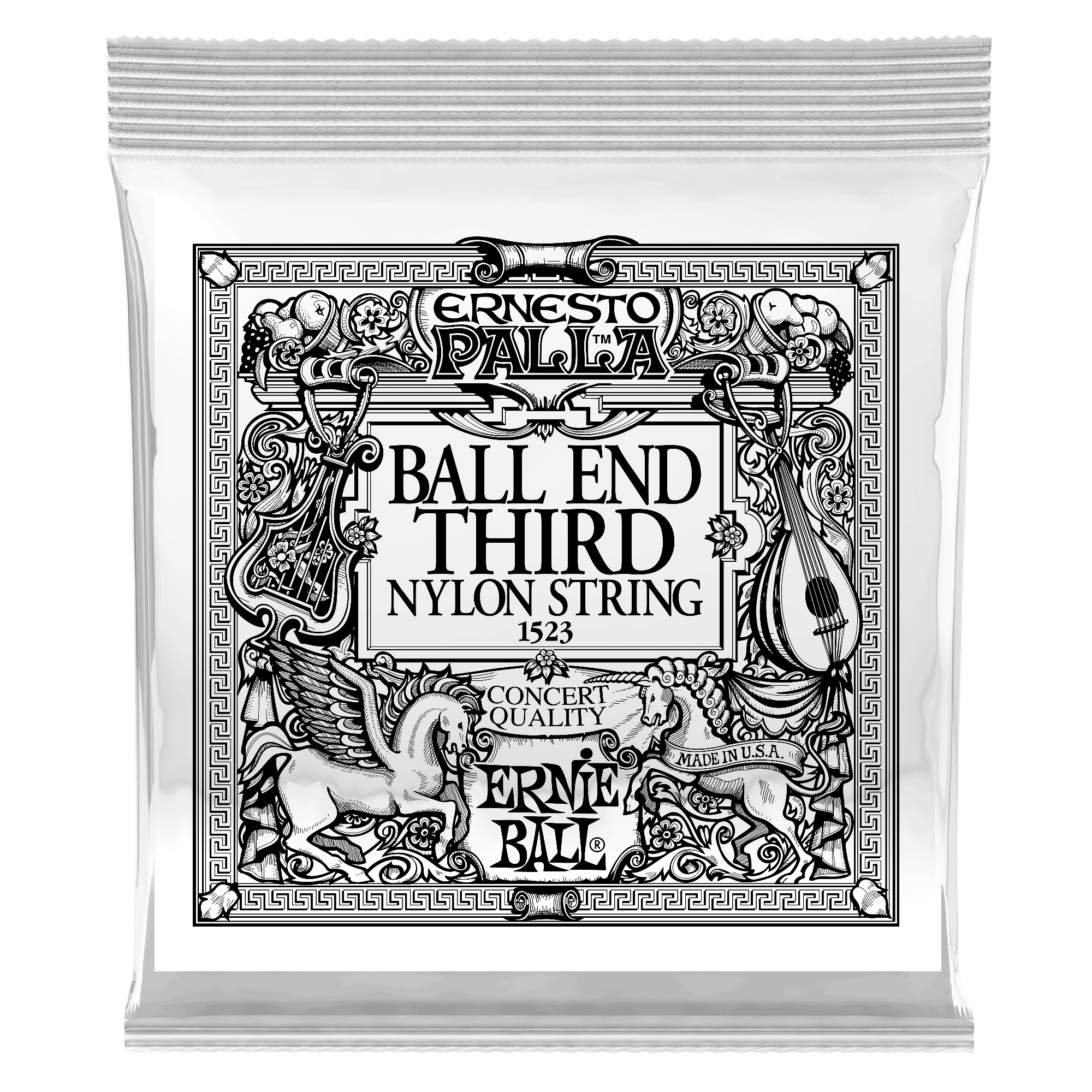 Ernie Ball Ernesto Palla Black Nylon Ball End Classical Guitar Strings are made of a solid black nylon monofilament providing rich pure treble tones with percussive attack. These strings feature a ball end contruction for faster installation and better tuning stability. .040 gauge