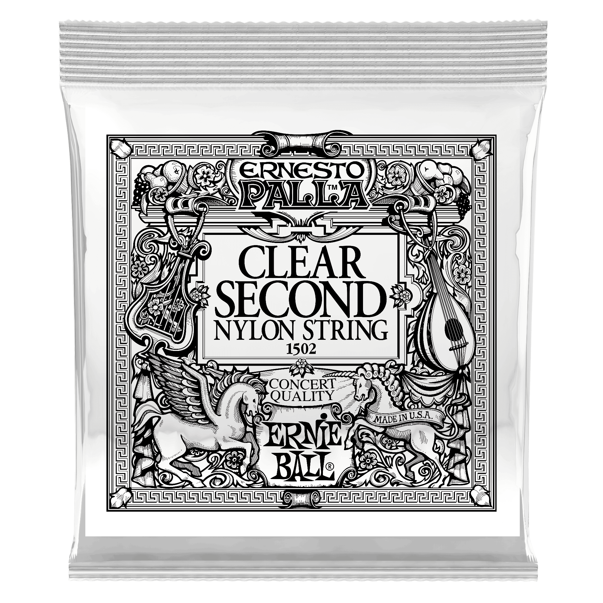 Ernie Ball Ernesto Palla Clear Nylon Classical Guitar Strings are made of a solid clear nylon monofilament. Nylon produces rich pure treble tones with percussive attack. .032 gauge