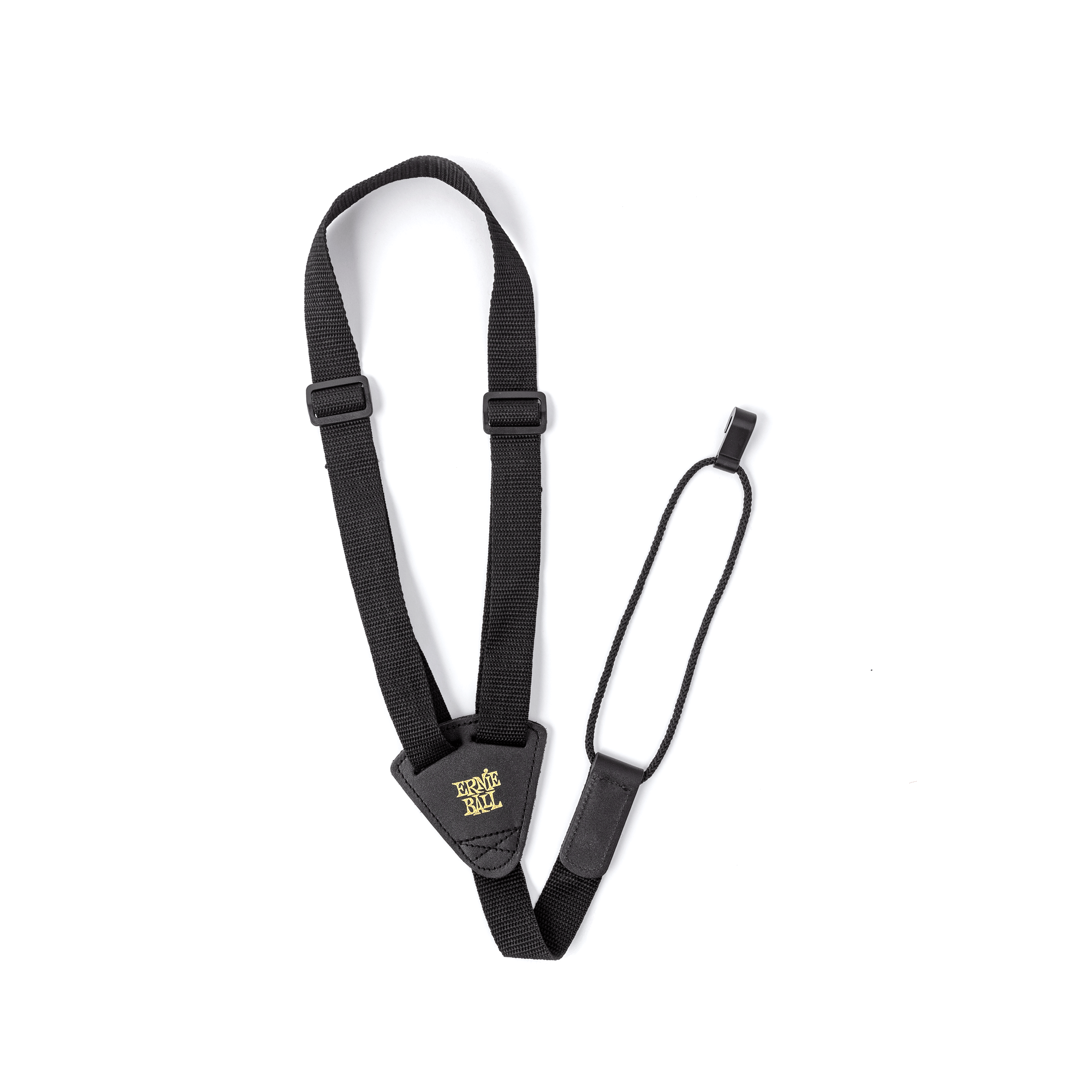 The Ernie Ball Ukulele strap is made from comfortable 1� wide black Polypropylene webbing machined stitched to quality black leather ends for excellent strength and longevity. Black injection molded plastic hook allows for tight fit connection to Ukulele soundhole, further enhancing comfort and reliability.