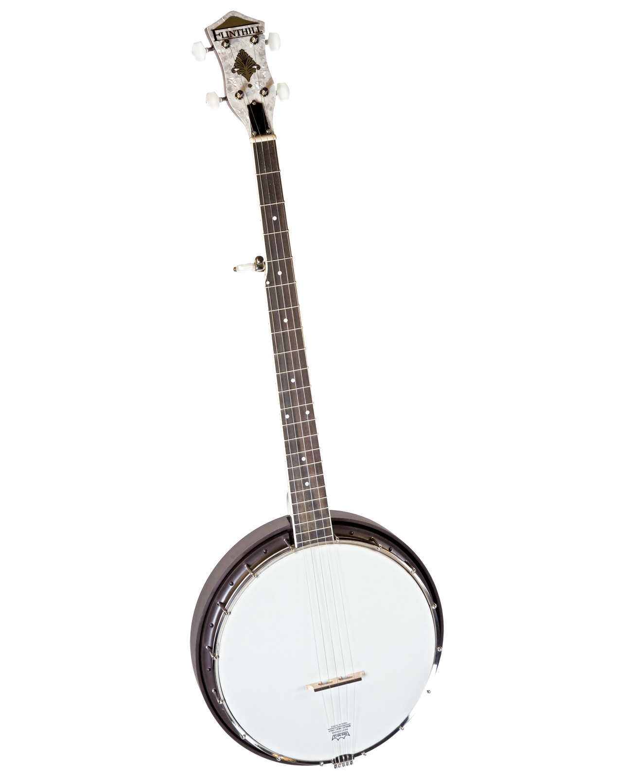 These Flinthill Banjos offer the beginning player all the tone and features of a professional grade banjo—but at an entry level price! The guitar style tuners combined with a geared fifth make tuning easy and the accurately fretted neck with easy action makes learning a breeze. The molded composite rim is super-light and super-strong and, combined with the composite resonator, offers the correct, traditional look as well. All metal parts are brightly plated for years of service. The elegant pearloid peghead is the last word in traditional style—the crowning touch on a superb instrument that perfectly combines the look of the past with all the modern touches of tone and playability!
