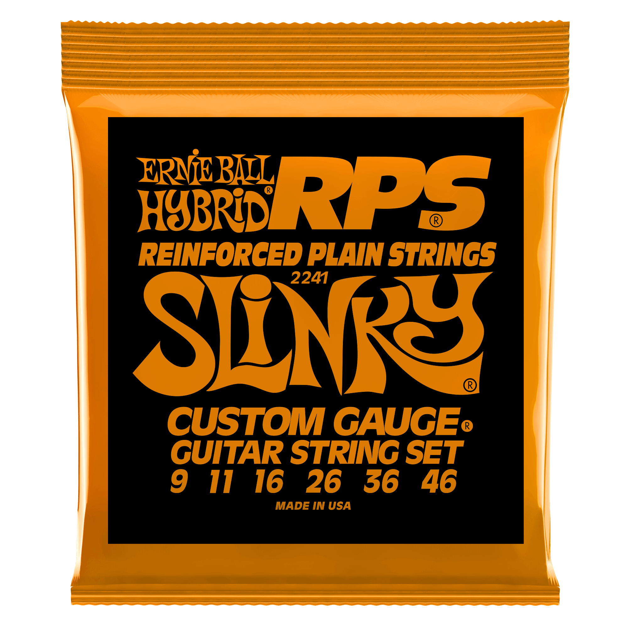 Ernie Ball’s RPS wound strings consists of specific gauges and core to wrap ratios for balanced rich harmonics and that signature Slinky feel. Plain strings in RPS sets last longer and stay in tune better than conventional plain strings. A patented winding of brass wire is tightly wrapped around the lock twist of the ball end of the plain strings. String slippage and breakage are minimized at the ball end where these most often occur. Gauges .009, .011, .016, .026, .036, .046