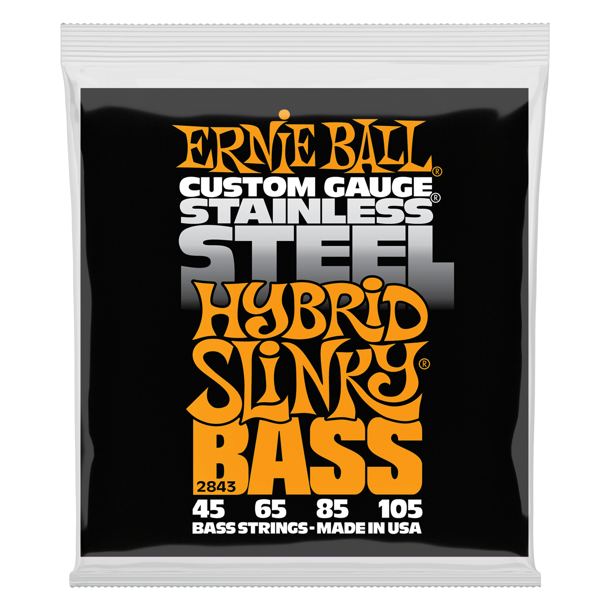 Ernie Ball Stainless Steel Slinky Electric Bass Strings are made from stainless steel wire wrapped around tin plated hex shaped steel core wire. These strings provide brighter tone and longer string life due to stainless steels inherent anti-corrosive properties. Gauges .045, .065, .085 .105