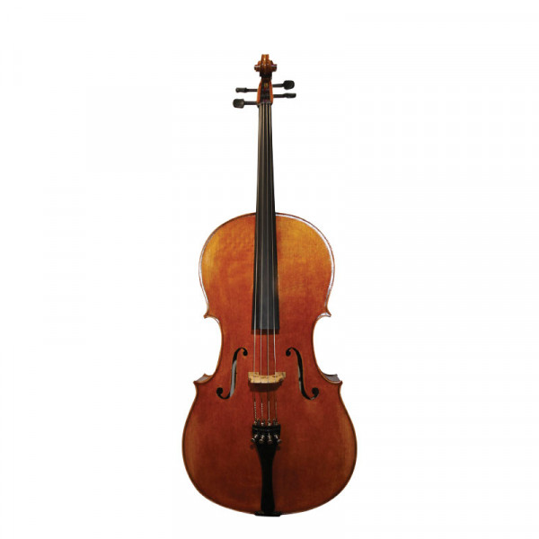 Maestro Cello: Hand Crafted Overseas, Antique Spirit Varnish, Solid Spruce Top, Solid Flamed Maple Back, Sides, Ribs & Neck, Seasoned Aubert Mirecourt Bridge, Seasoned Ebony Fittings, German Made Wittner Ultra Tailpiece, D’Addario Kaplan Strings, Black Fiberglass Case, Carbon Graphite Bow & End Pin, Size 4/4 only