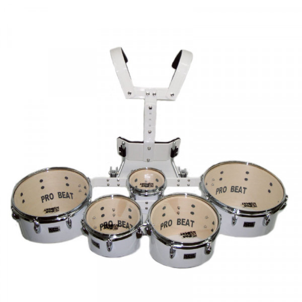 Skip to contentPro Beat Multitoms Quint: 6″-8″, 1″-10″, 12″-13″ With Carrying Harness And Sticks. Colors: White & Wine Red