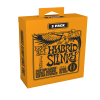 Now available in convenient three-set packs Ernie Ball Regular Slinky Electric Strings are our top selling set, and are favored by many musicians around the globe. Regular Slinky strings are played by Eric Clapton, John Mayer, Steve Vai and legions of guitar players worldwide These strings are precision manufactured to the highest standards and most exacting specifications to ensure consistency, optimum performance, and long life. Regular Slinky wound strings are made from nickel plated steel wire wrapped around a hex shaped steel core wire. The plain strings are made of specially tempered tin plated high carbon steel producing a well balanced tone for your guitar. Gauges .010, .013, .017, .026, .036, .046